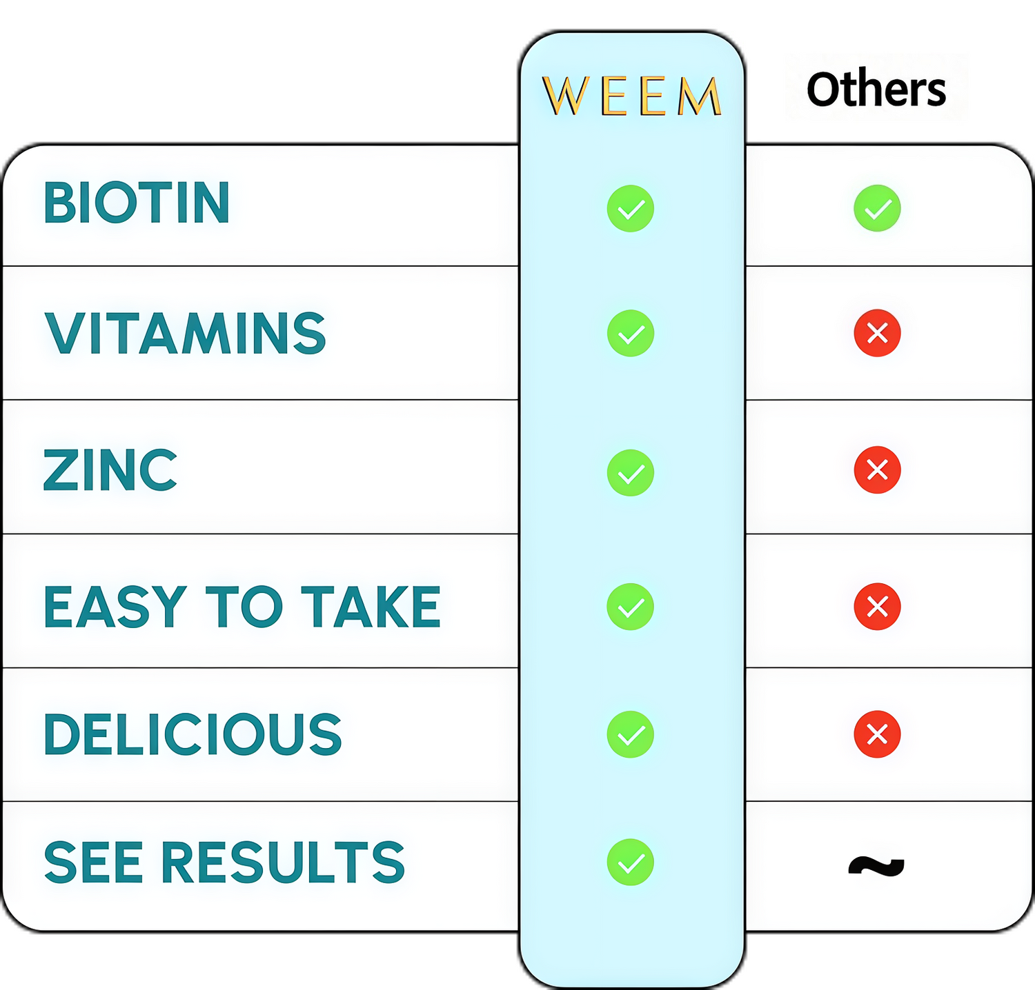 WEEM's hair gummies are 100% Vegan, low-calorie, gluten-free, and non-GMO.